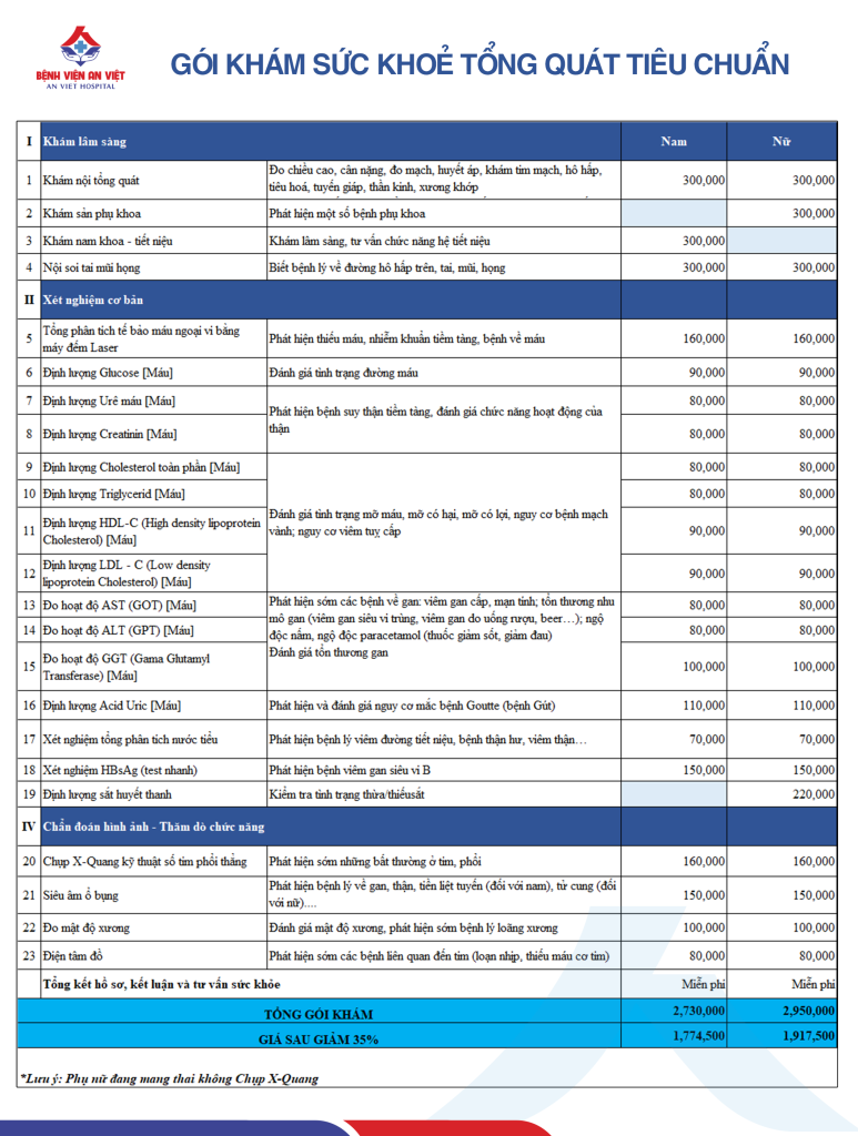2. Giới thiệu Gói Khám Sức Khỏe Tổng Quát Tiêu chuẩn tại An Việt