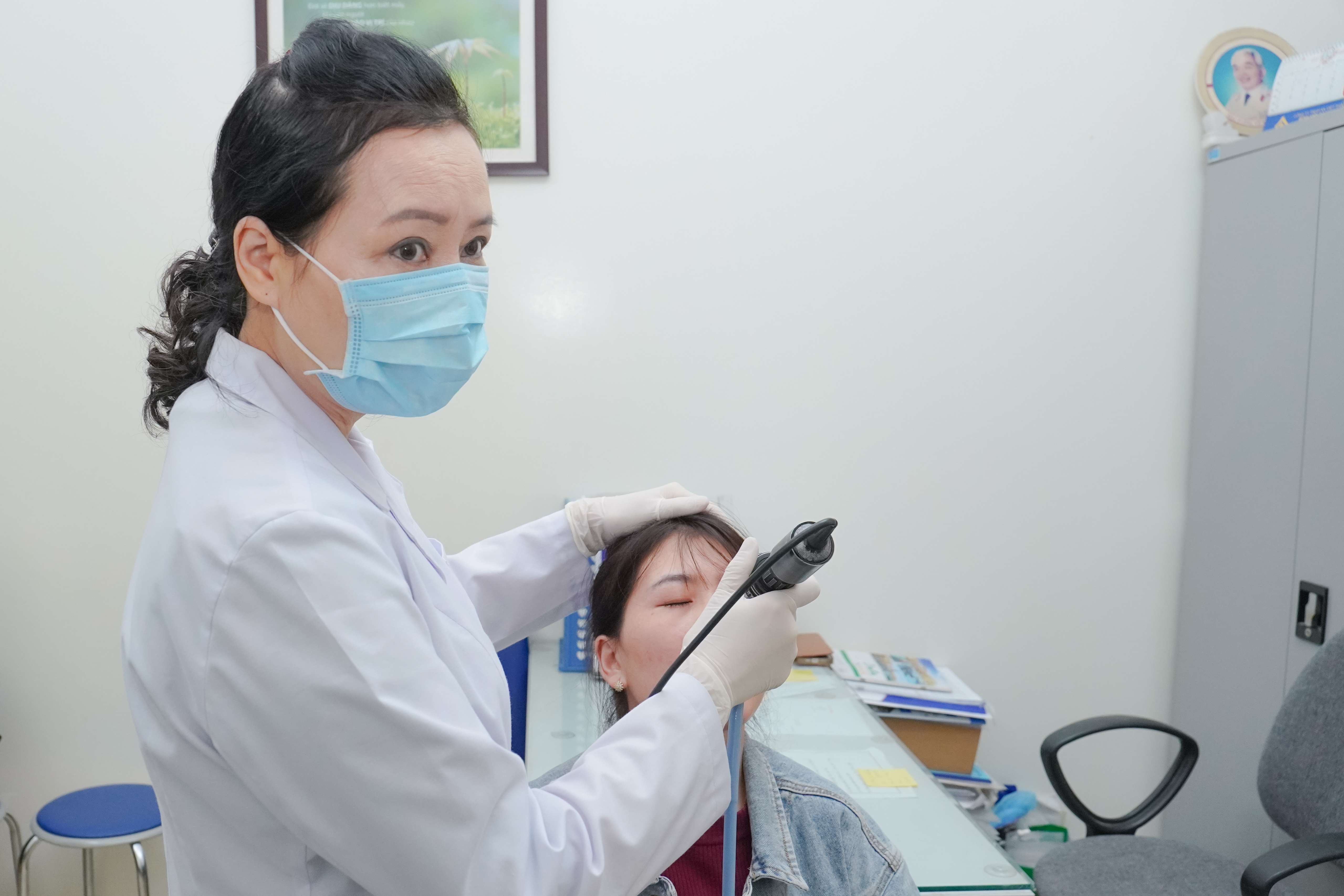 PGS. TS Nguyễn Thị Hoài An đang thăm khám cho bệnh nhân.