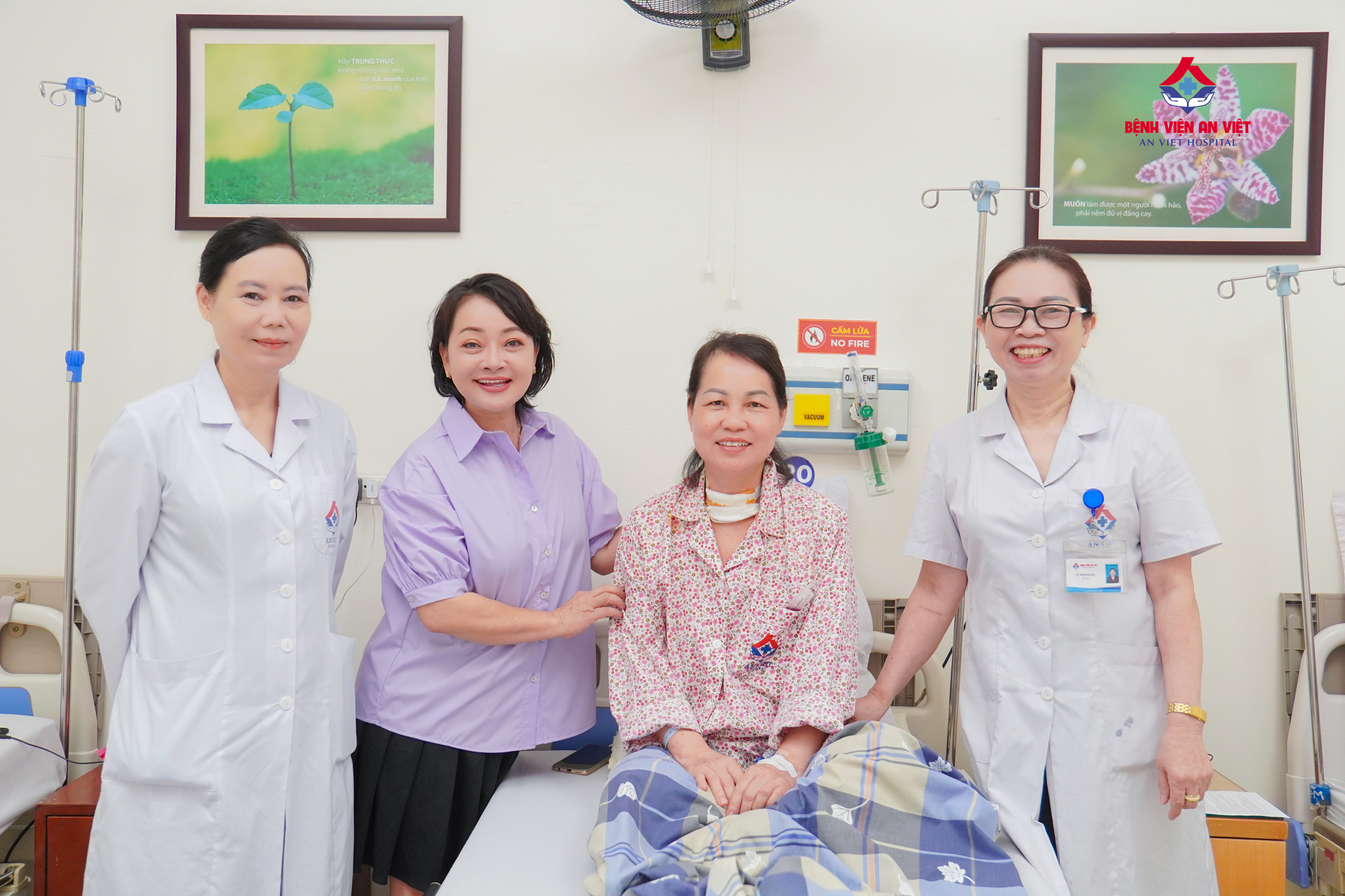 Hay chị Thanh Hoa chia sẻ: Một tháng trước chị phẫu thuật tuyến giáp tại bệnh viện An Việt, Mặc cảm về bệnh ung thư tuyến giáp, chị đã suy sụp, lo lắng và hoảng loạn. Chị kể lại chị đã làm sẵn di chúc và dặn dò chồng con . Nhưng đến bệnh viện An Việt, được bác sĩ Phong thăm khám, tư vấn và động viên trước phẫu thuật nên chị đã bình tĩnh hơn nhiều. May mắn sau khi phẫu thuật, chị về khoa điều trị được sự chăm sóc, hỗ trợ của bác sĩ CKI Lý Thị Phong cùng đội ngũ điều dưỡng trong khoa điều trị nên chị đã hồi phục rất nhanh và hiện tại sức khỏe bình thường, chị cảm thấy như được sống lại lần nữa. Khi xuất viện ra về chị cũng gửi lời cảm ơn sâu sắc tới bác sĩ và điều dưỡng của viện.